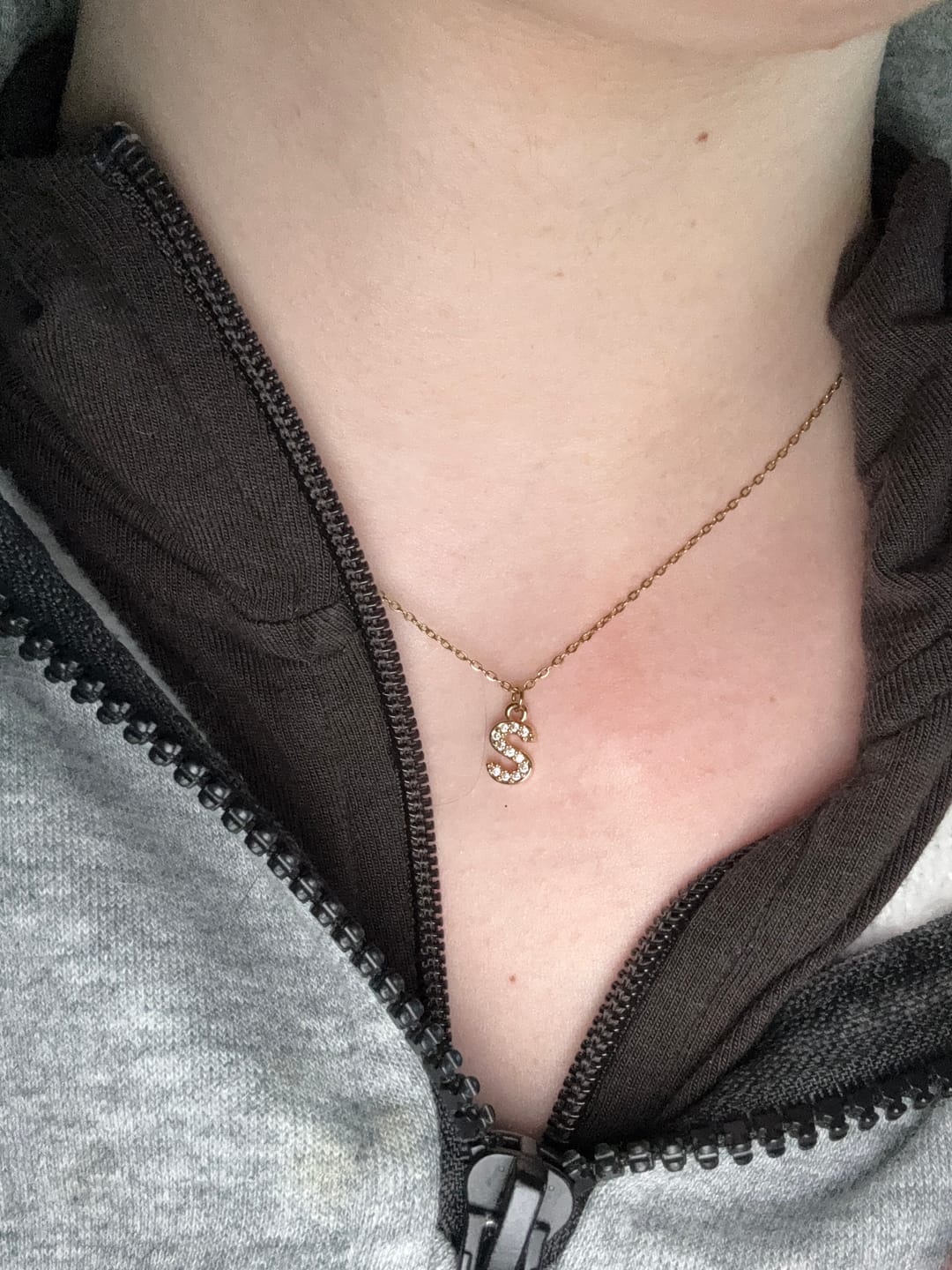 "My boyfriend surprised me with this necklace for my birthday, and I seriously teared up. It’s so personal having my initial close to my heart. The quality is amazing for the price — the gold looks very real and the stone catches the light beautifully. It’s light, comfortable, and hasn’t irritated my skin at all (which is rare for me!)."