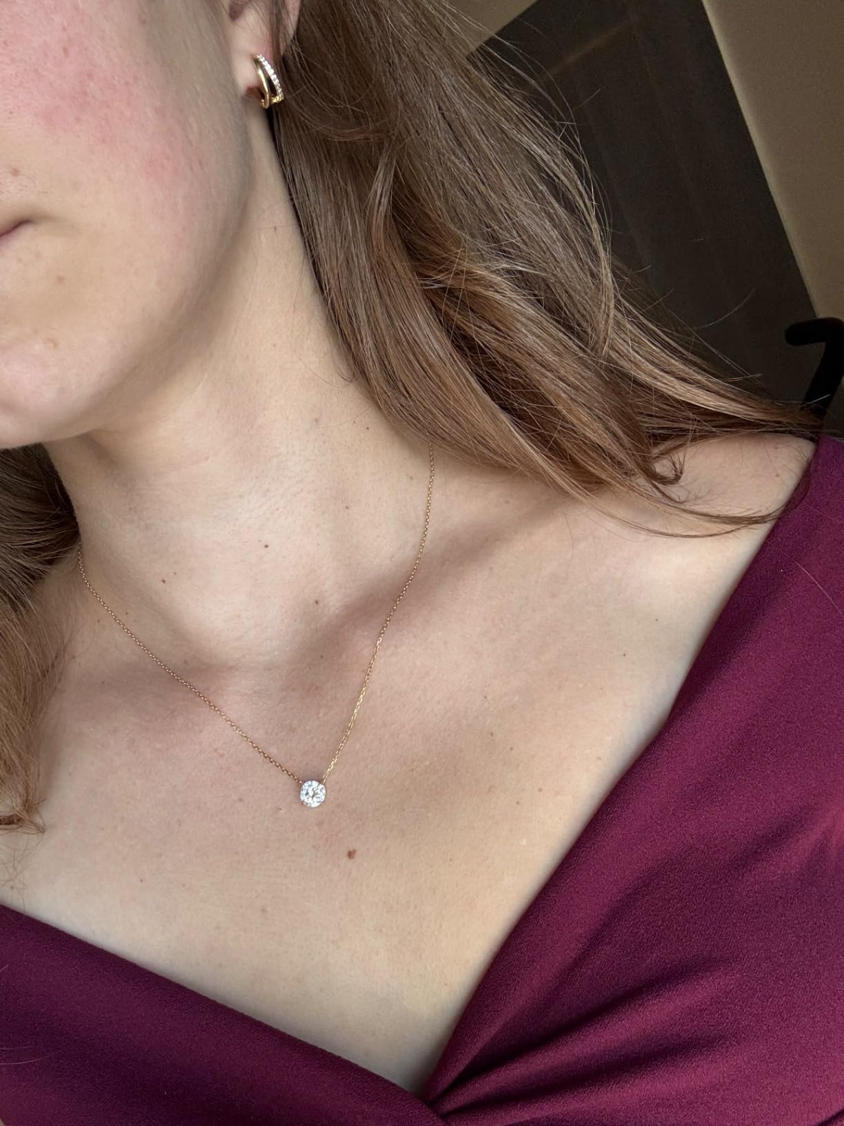 "I’ve had my eye on this 14k Gold Diamond Pendant Necklace for a while, and I’m so happy I finally made the purchase. I chose the rose gold variant, and it’s simply beautiful. The diamond catches the light in the most flattering way, and the necklace sits perfectly on my neck. I wear it to work and on nights out—it’s incredibly versatile. If you’re thinking about getting it, do it! You won’t regret it."