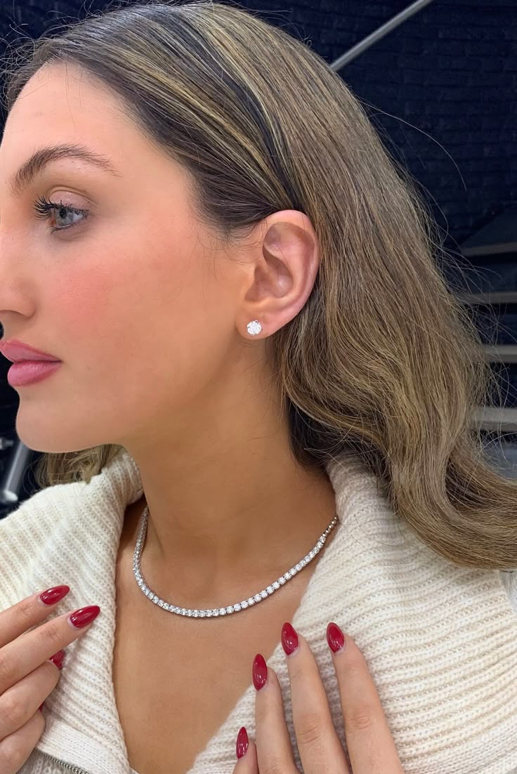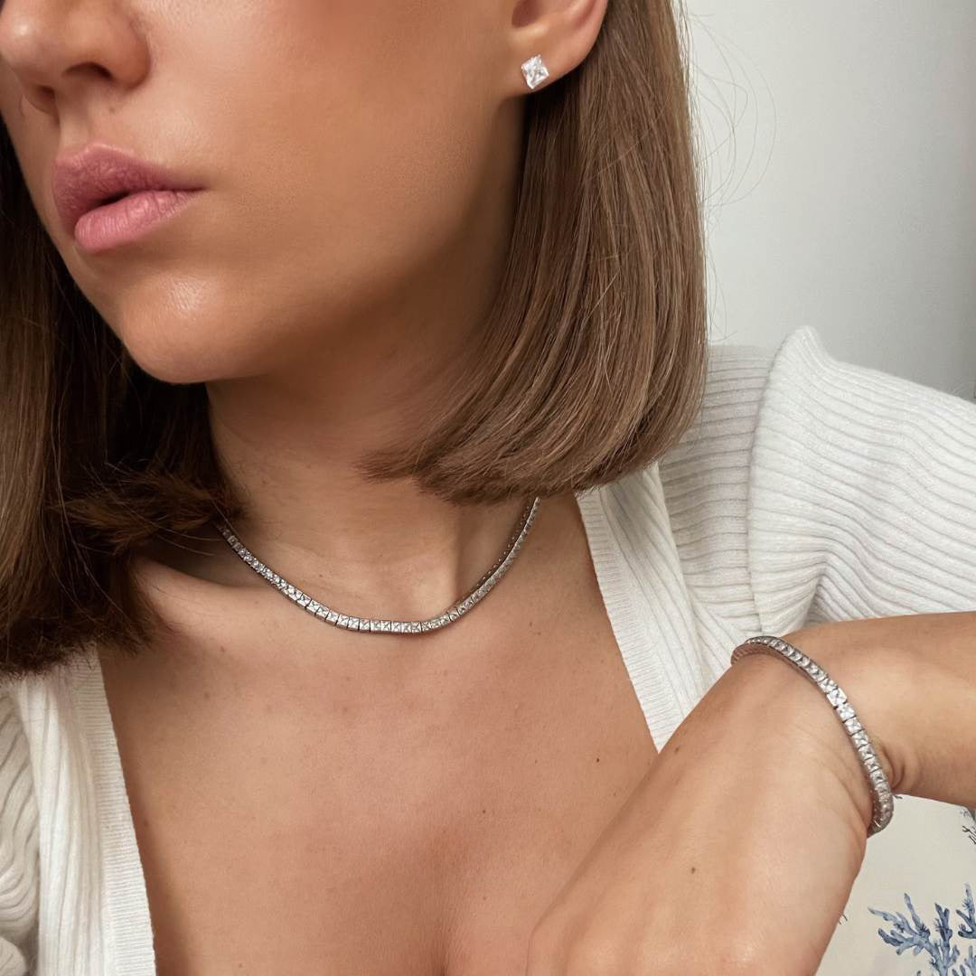 "I bought the tennis necklace first and loved it so much, I had to grab the earrings too. Wearing both together is the definition of classy. I’ve worn the set to dinner dates and family parties — it catches just enough attention without being too flashy. Everyone thinks it’s real diamonds!"