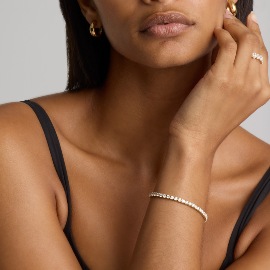 Imagine walking into a room, dressed in your favorite outfit, with a confident smile that lights up the space. You’re wearing the perfect dress, shoes, and accessory—our diamond tennis bracelet. Its subtle yet stunning sparkle elevates your look, adding that final touch of refined elegance.
