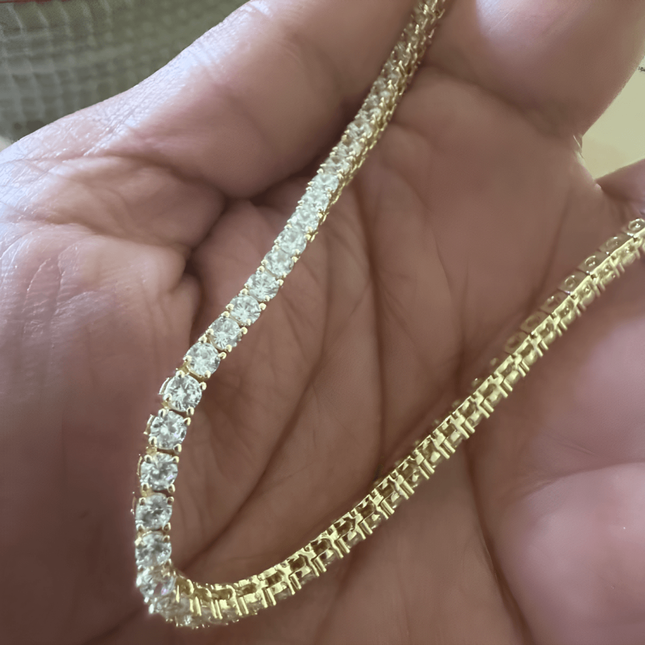 "I was looking for a classic necklace that I could wear every day, and this tennis necklace is perfect. It's elegant but not too flashy, and it goes with everything in my wardrobe. The quality is excellent, and I'm so glad I made this purchase."