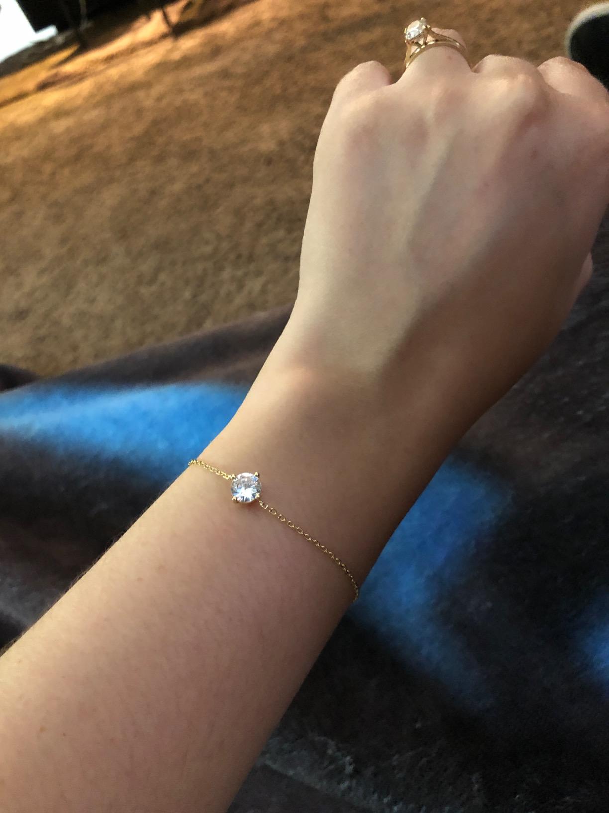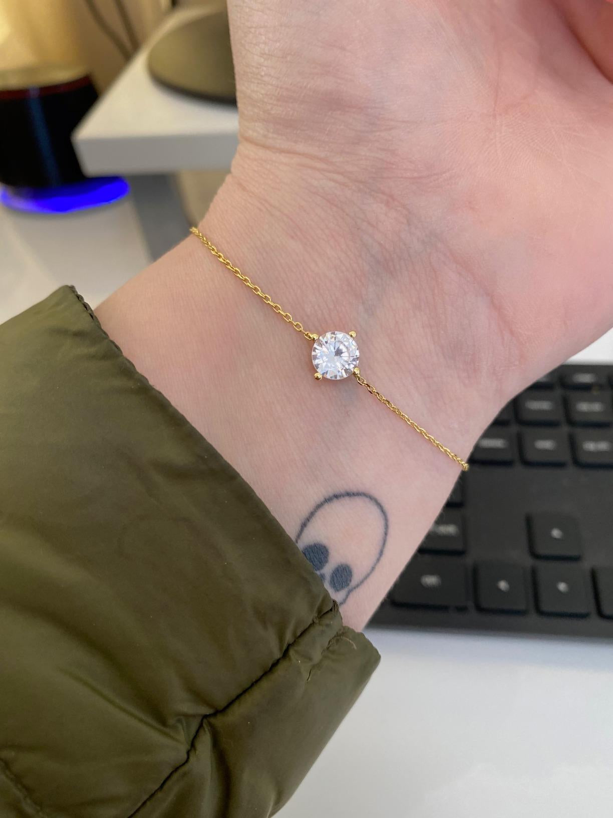 I'm absolutely in love with this bracelet! The solitaire stone catches light beautifully and the gold chain is delicate yet sturdy. Everyone thinks I spent hundreds on it. Luxury style without the luxury price tag is definitely true!