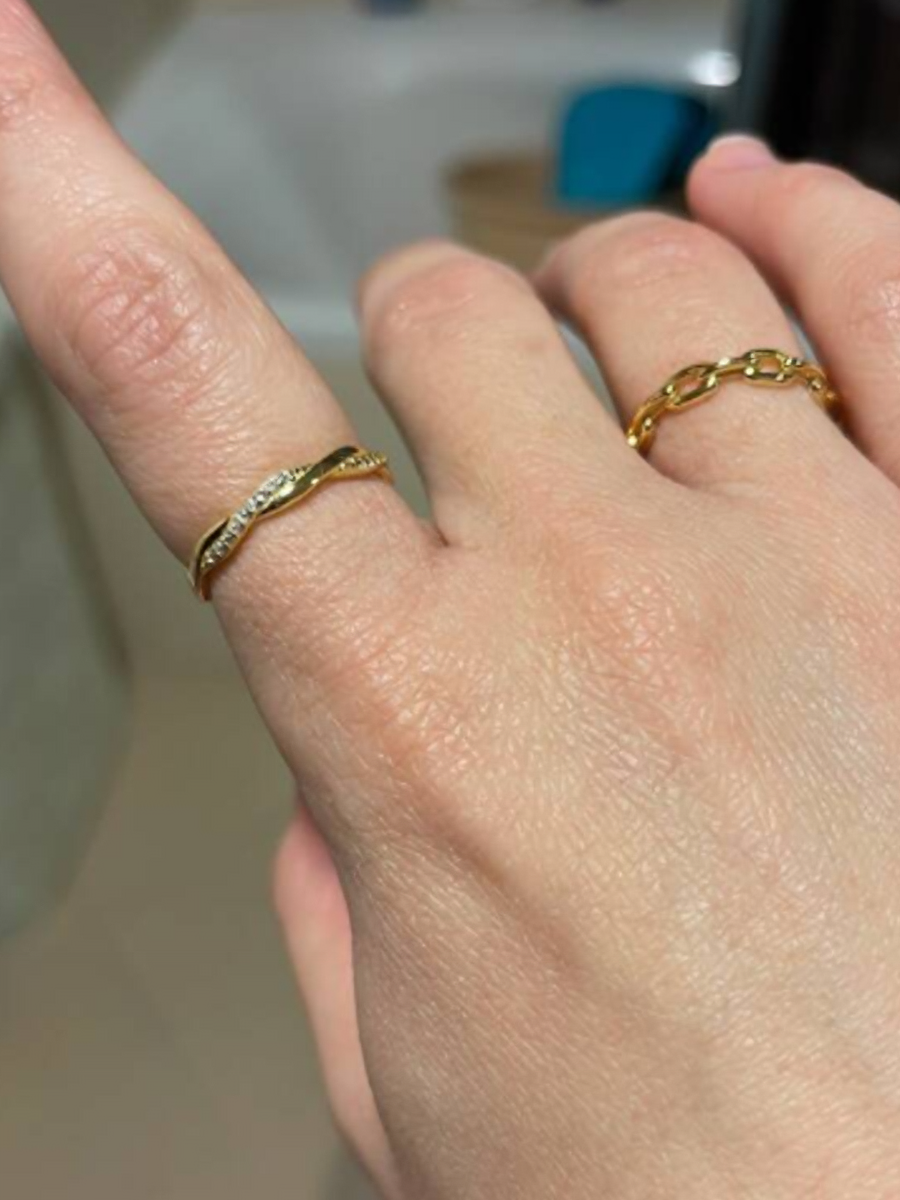 "I can’t believe how much I love this ring! It’s one of the best jewelry pieces I’ve ever bought. The braided gold design is modern and timeless, and the cubic zirconia stones really add a stunning sparkle. I wear it every day, and it’s incredibly comfortable—no irritation at all, even after hours of wear. If you’re looking for a ring that’s both beautiful and functional, this is it."