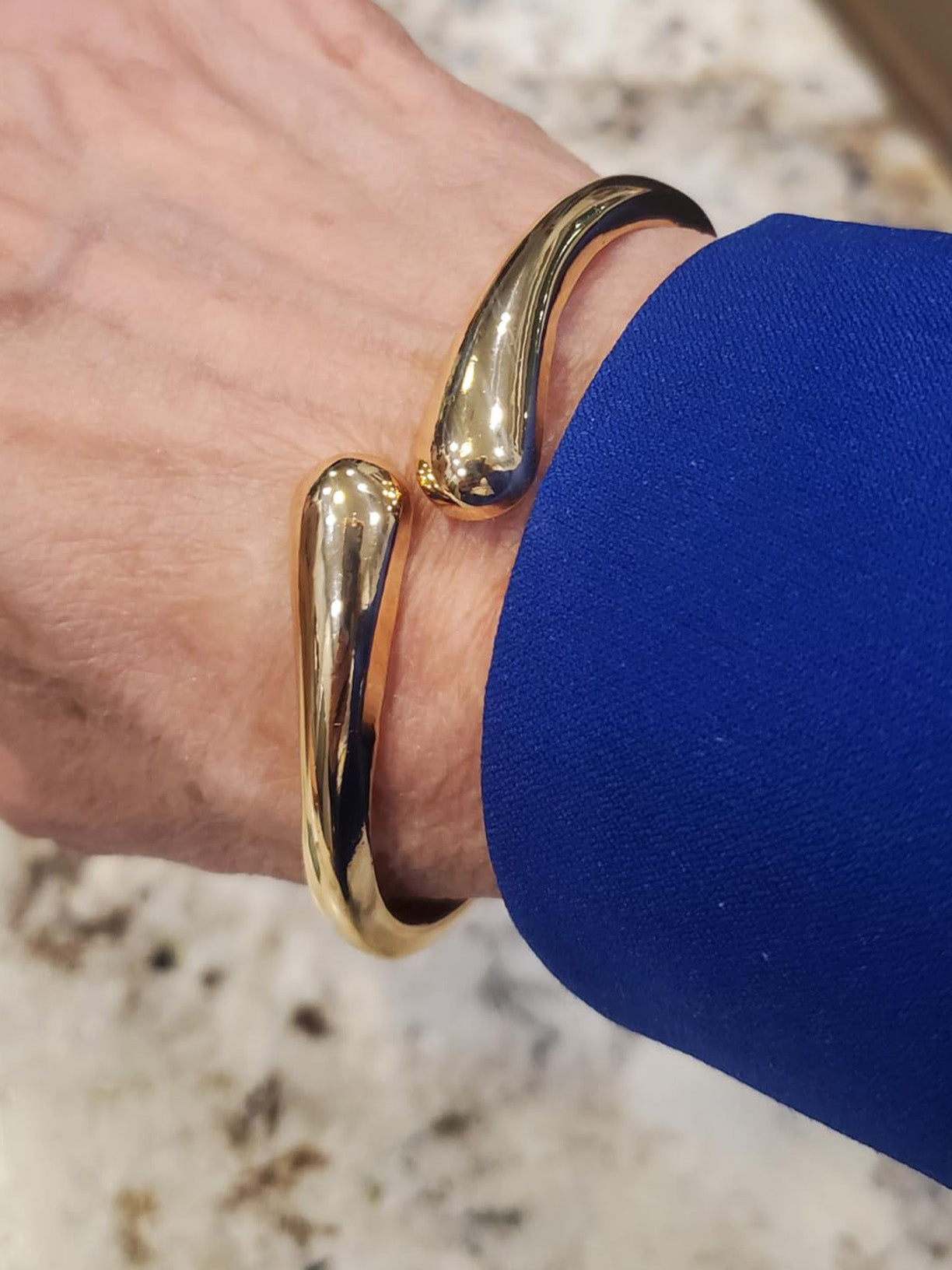 I'm completely obsessed with this chunky gold bangle! The quality and shine are outstanding - it genuinely looks like a piece from a luxury jewelry store. It's comfortable, adjustable, and adds that perfect finishing touch to any outfit!
