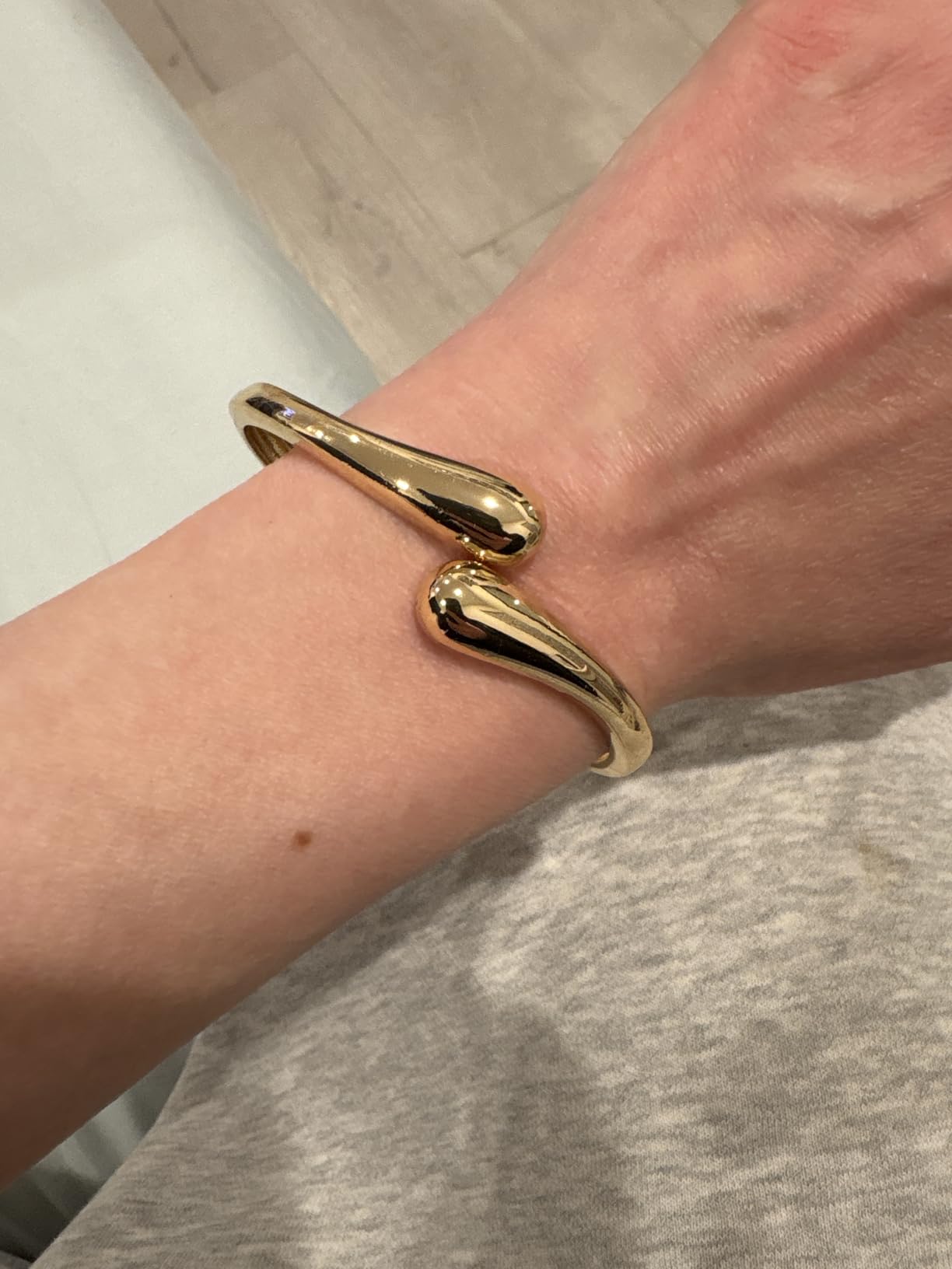This bangle bracelet is simply gorgeous! The design is so elegant, and the gold finish looks incredibly high-end. It adds that perfect finishing touch to any outfit and always gets compliments. Such amazing value!
