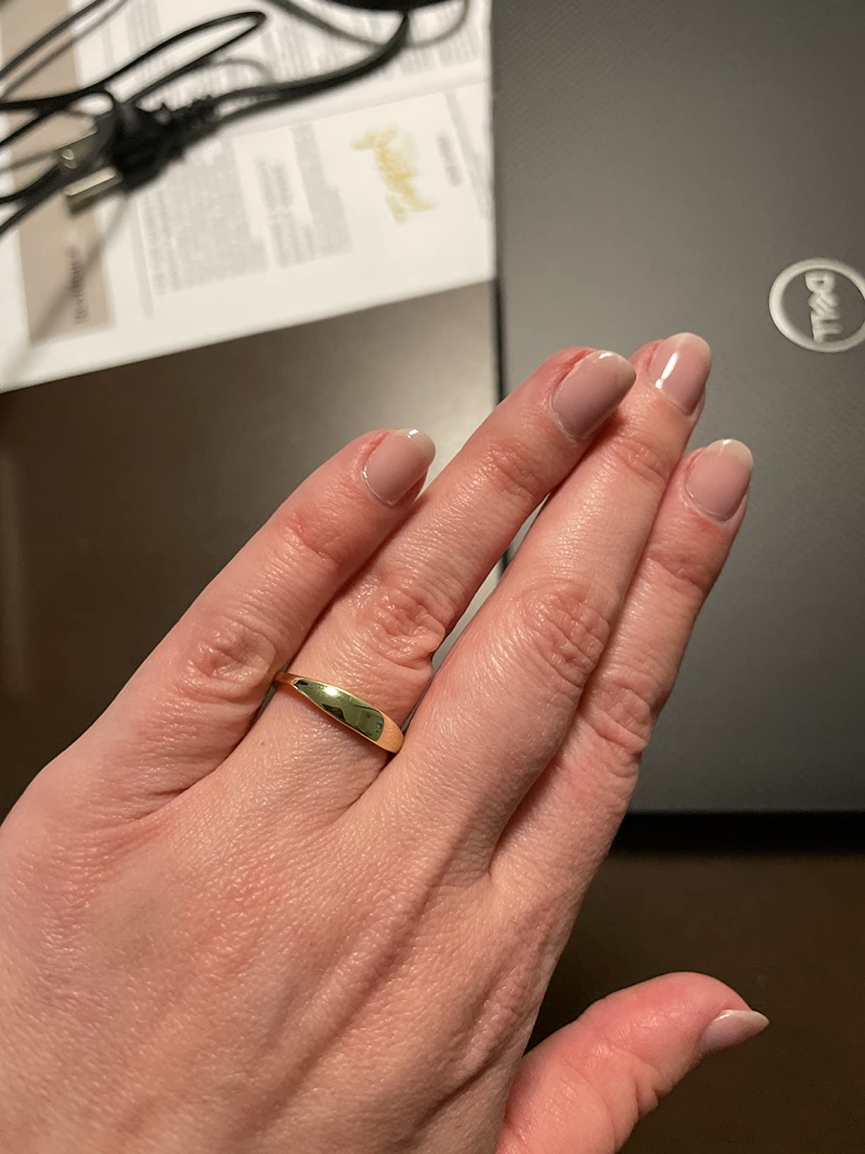 The chunky gold signet ring is gorgeous! It has a substantial feel and the gold finish is rich and expensive-looking. It's versatile enough to wear with anything from jeans to dresses. The sizing was perfect, and it's comfortable for all-day wear!