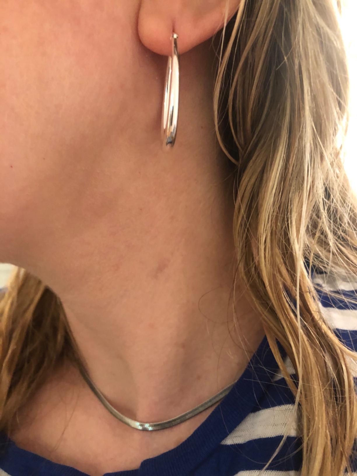 "What surprised me most was how flattering the shape is. They frame my face without overwhelming it. I’ve worn them nearly every day since I got them and still get the same gleam as day one. I’m picky with jewelry and tend to return most things, but these felt right immediately. So glad I found them!"