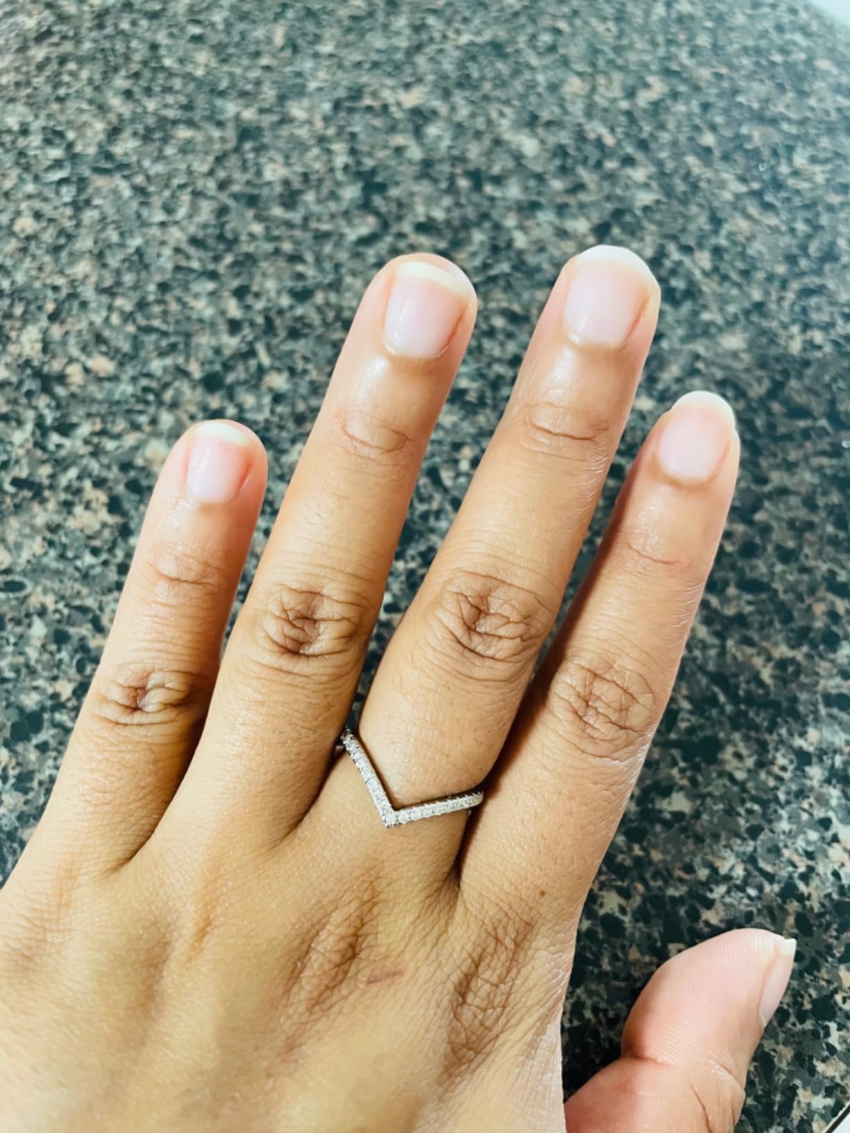 "I’m obsessed with this ring! The V shape is so trendy yet timeless, and the cubic zirconia really sparkles in natural light. It fits perfectly as a thumb ring or paired with others on my fingers. The gold plating hasn’t faded after weeks of constant wear. It’s a beautiful, affordable piece that elevates any outfit."