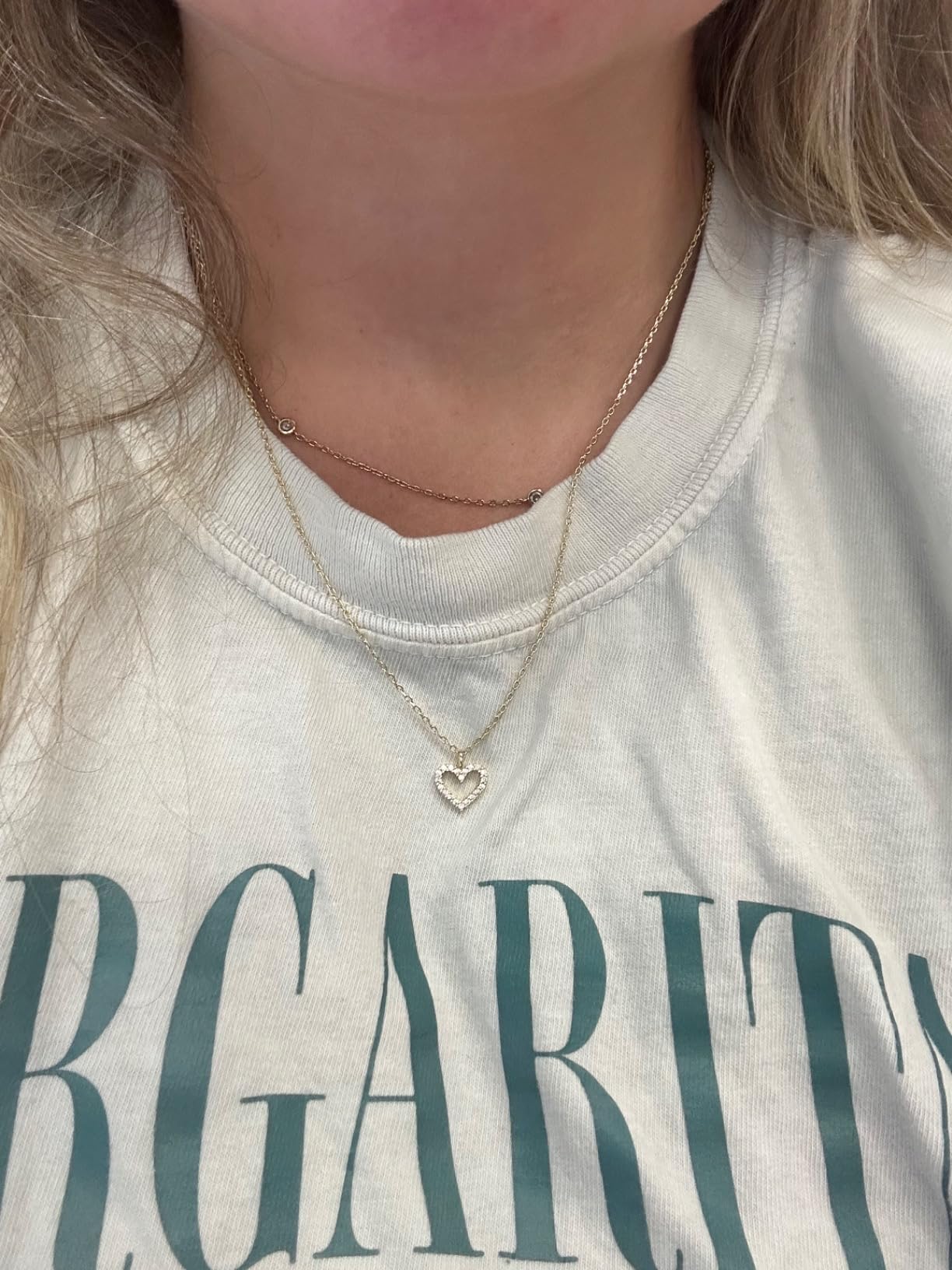 This heart necklace is so pretty and feminine! The pendant is dainty yet noticeable, and the cubic zirconia adds a lovely sparkle. The chain is comfortable for everyday wear and the extender allows for versatility. A lovely addition to my jewelry collection.