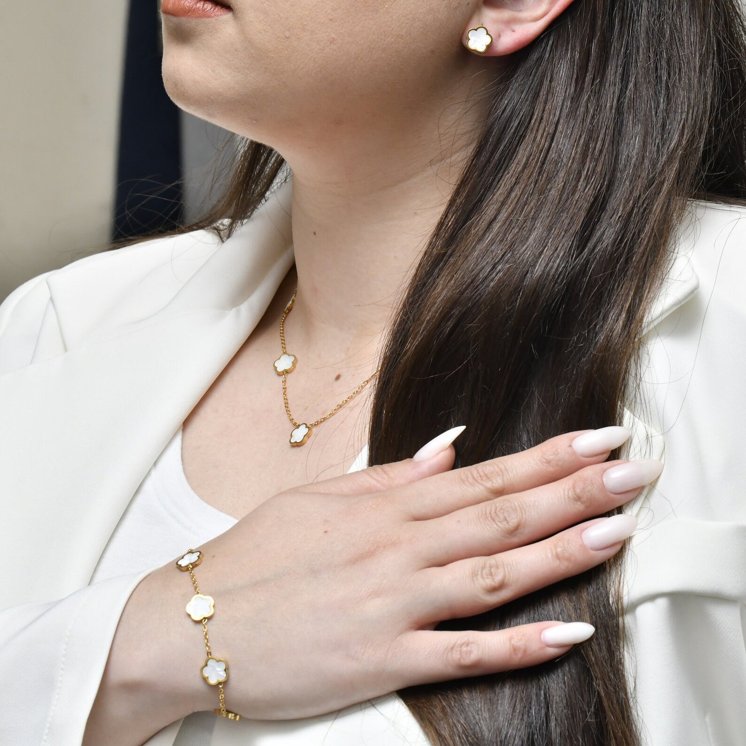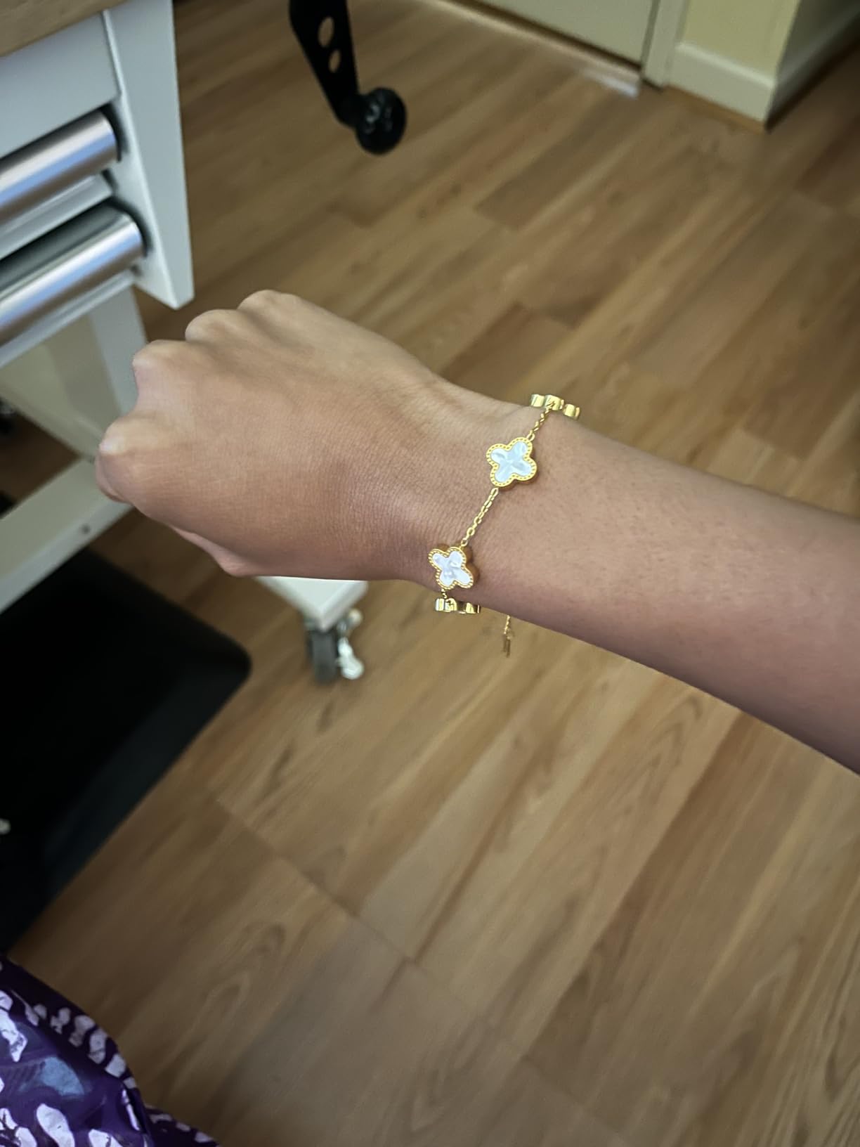 "I purchased this bracelet after a promotion at work as a small treat to myself. It’s understated yet eye-catching, and the clover design gives it a lovely sense of meaning. The adjustable band is a lifesaver — I can tighten it quickly when I’m typing and loosen it when I’m out for the evening. It’s become my go-to piece that adds polish without trying too hard."
