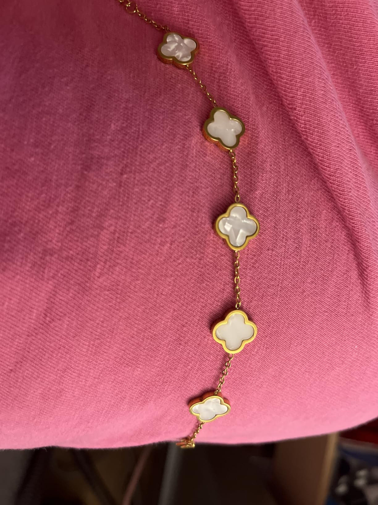 This dainty bracelet is such a lovely addition to my collection! The gold has a warm tone that looks genuinely expensive. The clover charm adds a unique touch without being overwhelming. Perfect for everyday wear or special occasions!