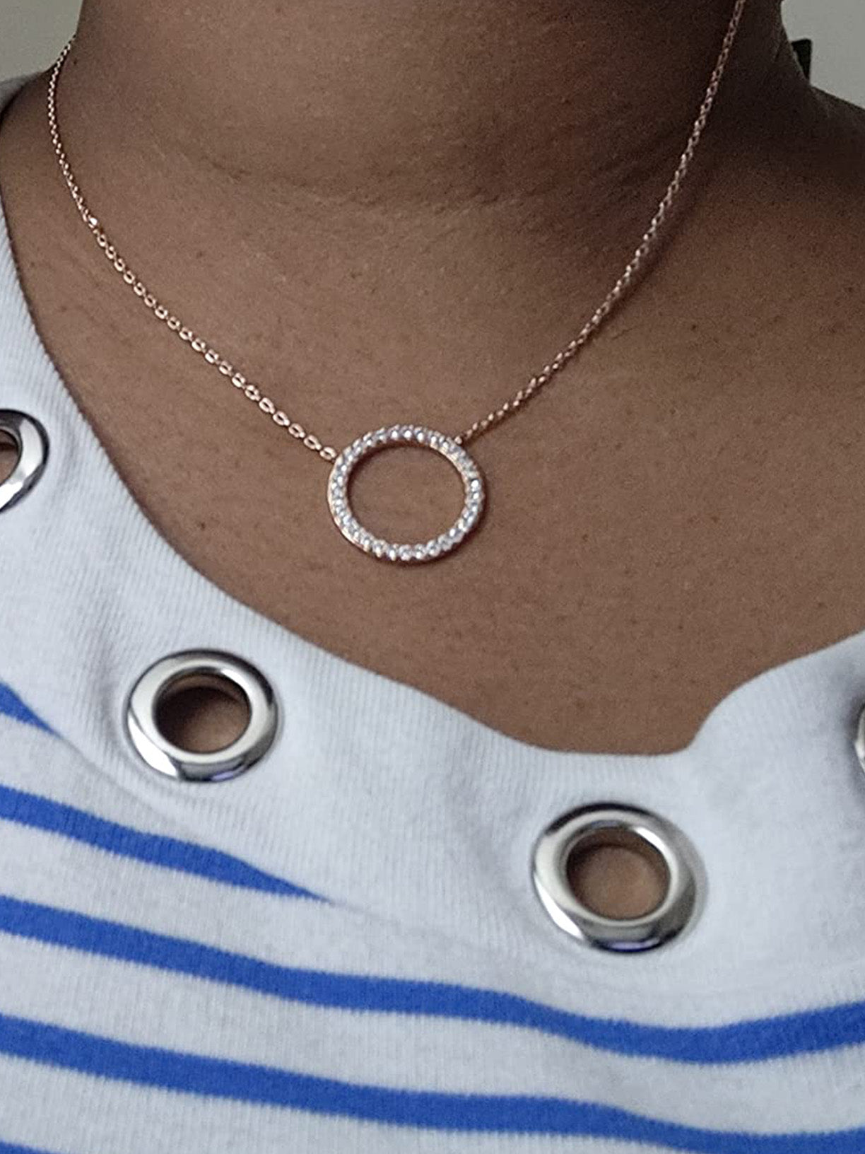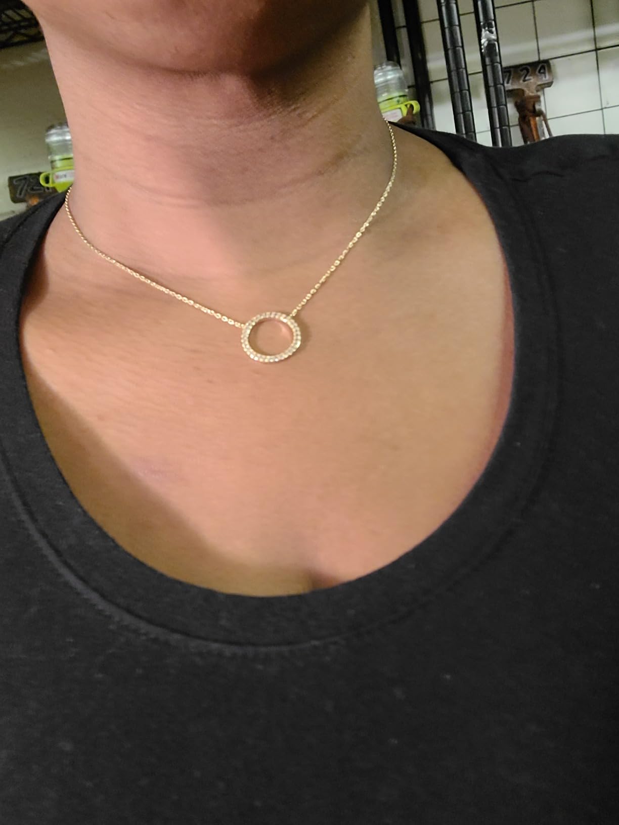 This necklace delivers perfect daily luxury! The circle design is elegant and the CZ stones sparkle like diamonds. I've received countless compliments on it.