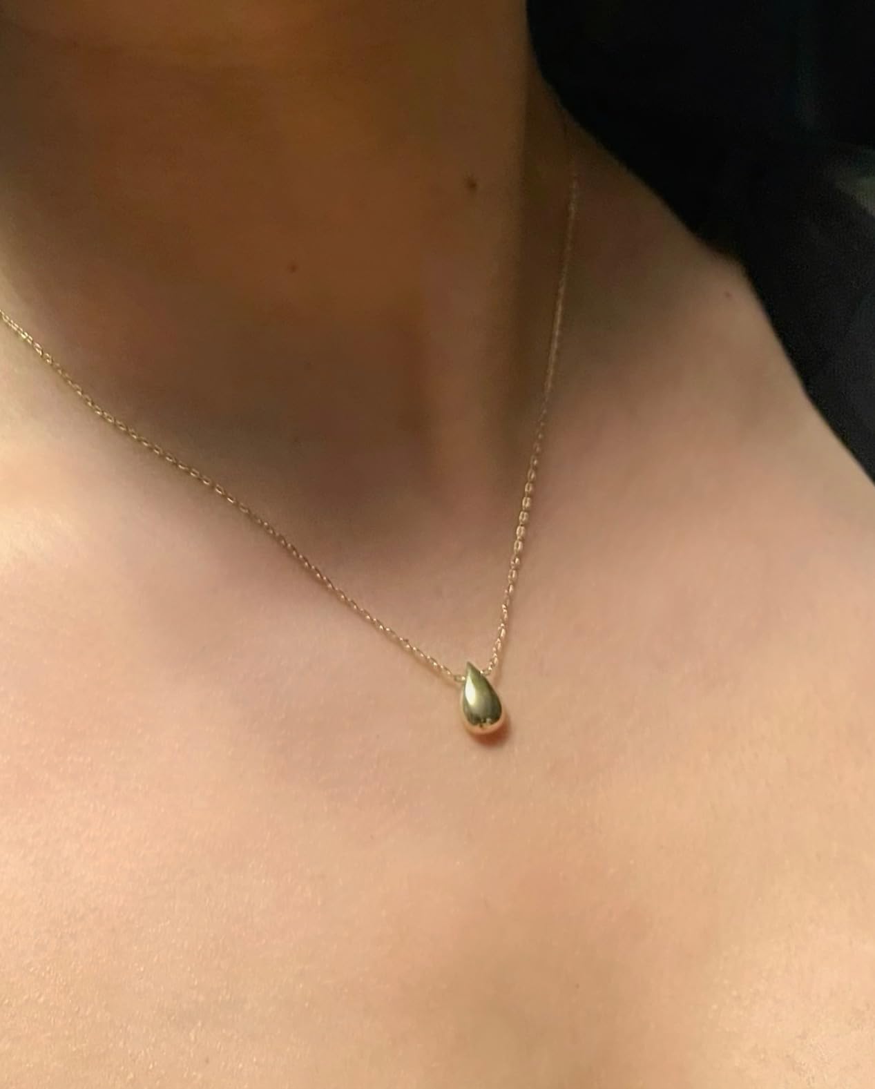 I receive compliments every time I wear this necklace! The water drop pendant is the perfect size - delicate yet noticeable. The craftsmanship is exceptional, and the gold plating has a beautiful warm tone. It's comfortable enough to wear all day and hasn't irritated my sensitive skin at all. This looks like a piece that should cost ten times the price!