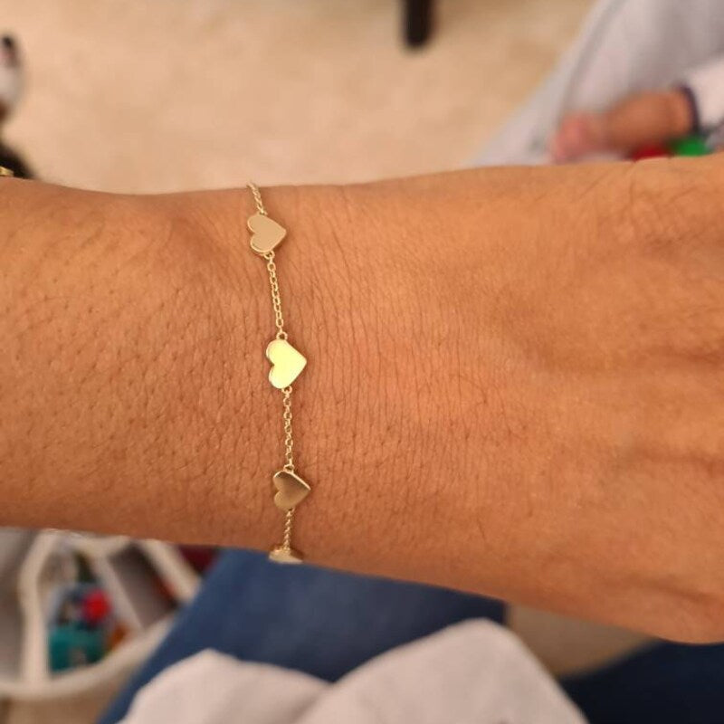 This bracelet has exceeded all my expectations! The quality is impressive for the price point - the gold finish is rich and warm-toned, and the heart charms add just the right amount of detail. It's become my signature piece!