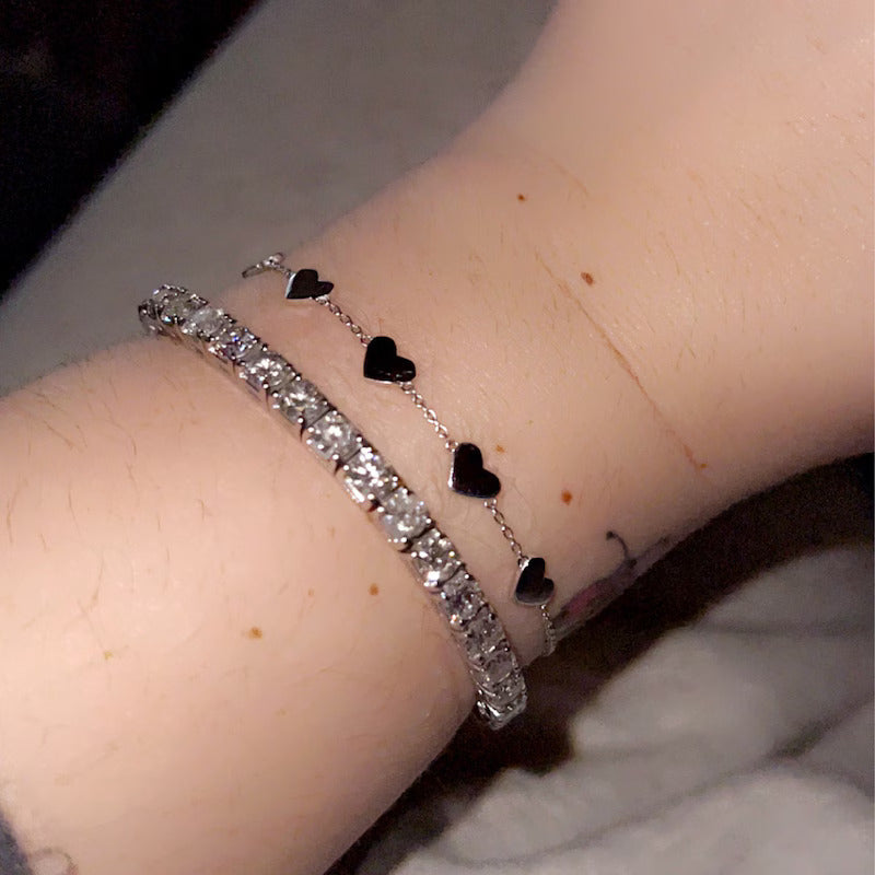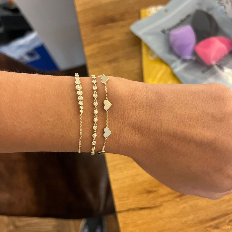 "Absolutely adore this bracelet. I layered it with two others I own and it fits right into the mix while still standing out. It has a very “everyday luxury” feel. The hearts are small enough to keep it minimalist, but they still catch the light beautifully. I’ve had zero issues with fading or discomfort, and I wear it a lot. A total win."