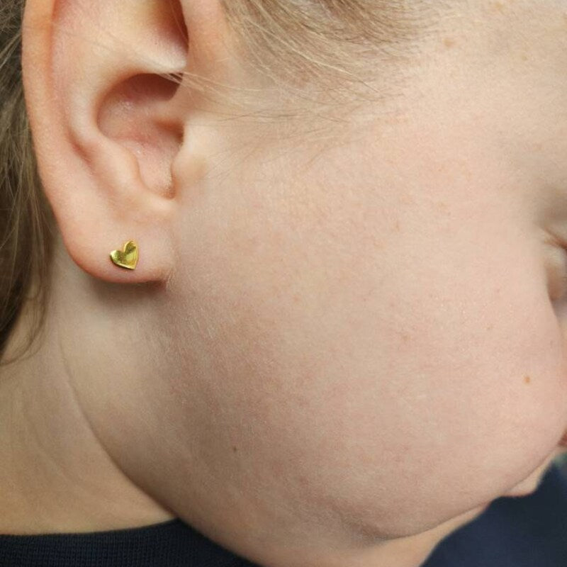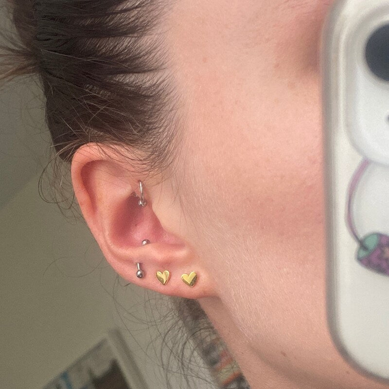 These gold heart studs have quickly become my daily favorite! They're the perfect size for everyday wear, and the heart shape adds a touch of femininity without being too cutesy. The gold plating has a beautiful warm tone that complements any outfit.