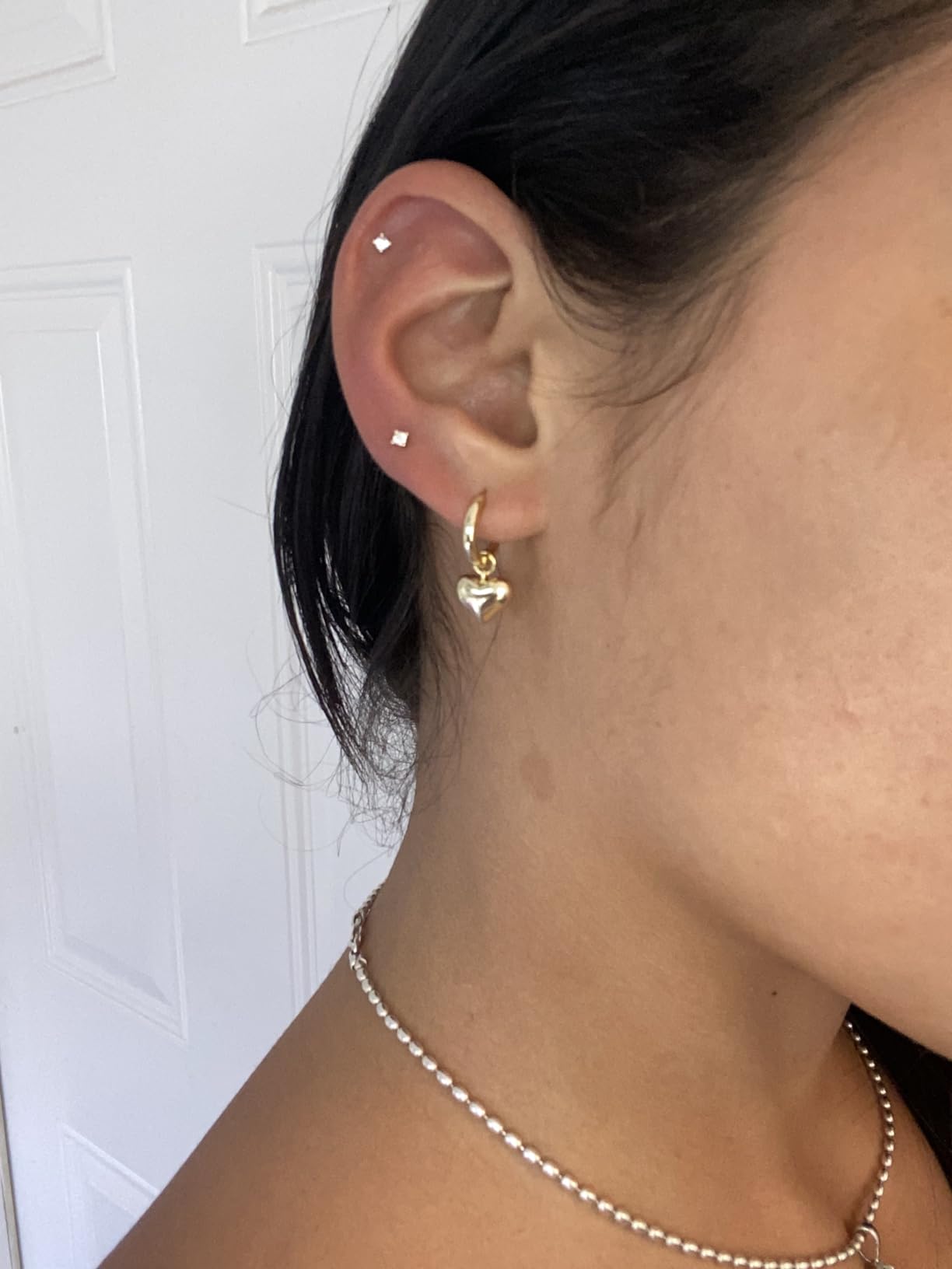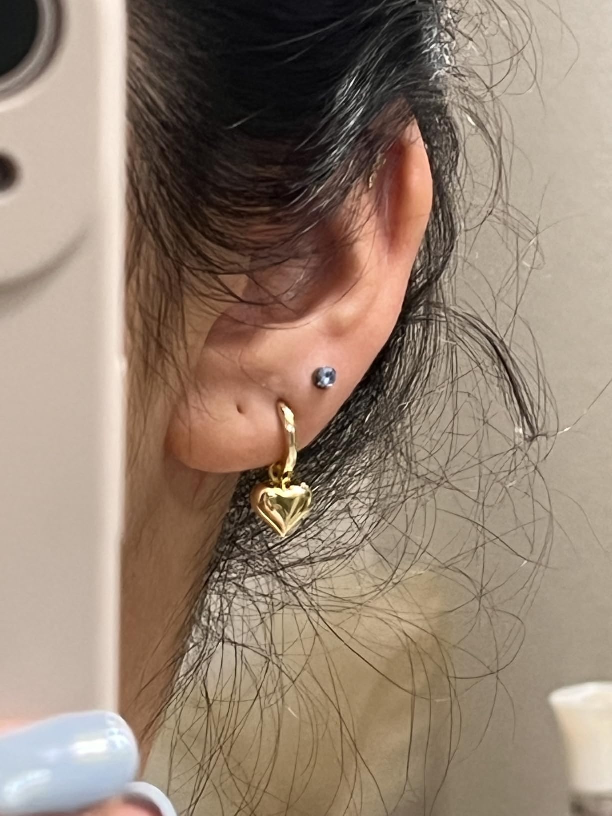 I'm amazed by how luxurious these earrings look for the price! The heart charm is delicate and beautiful, and the huggie style is secure and comfortable. They elevate any outfit effortlessly!