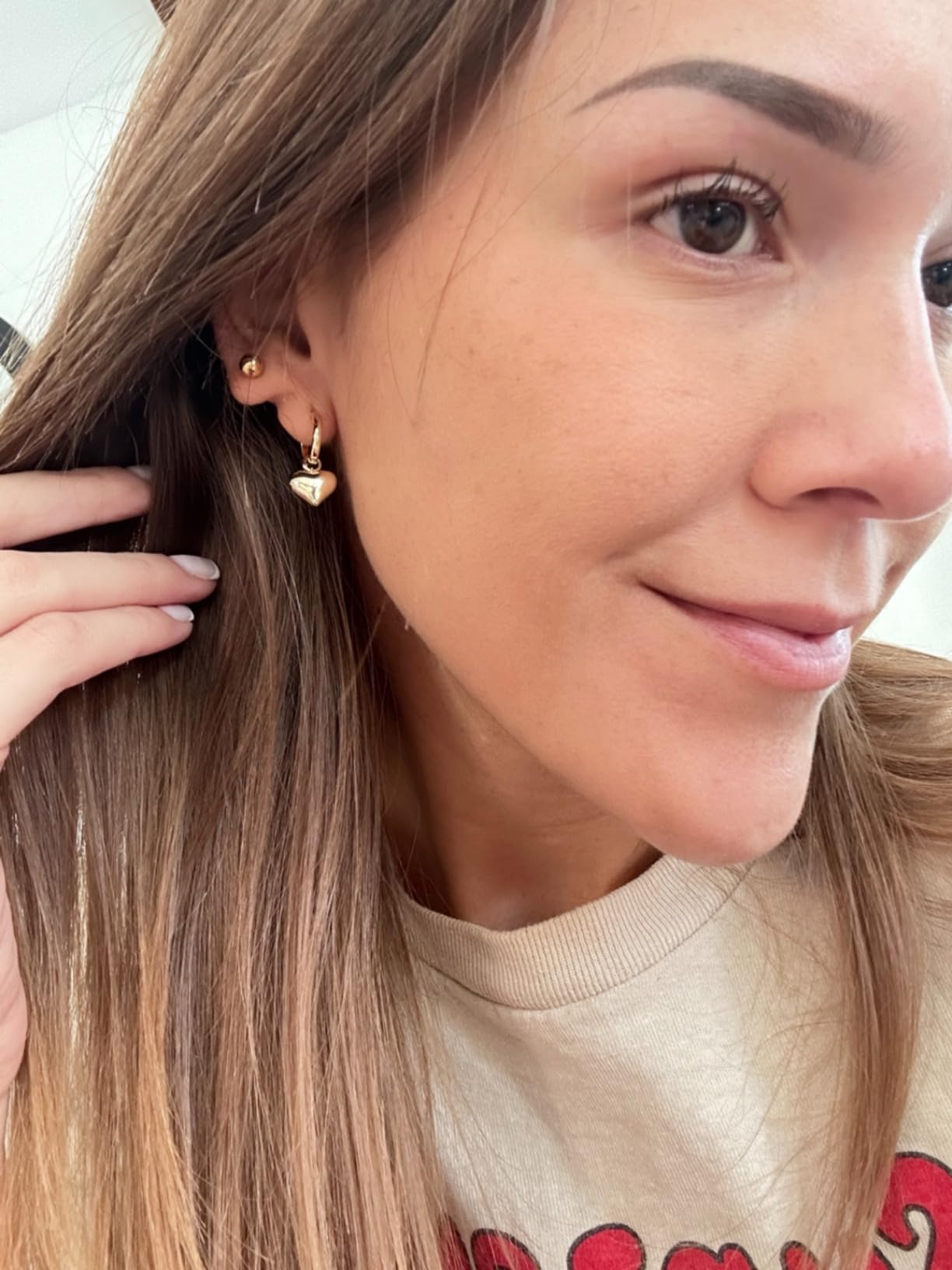 These earrings have quickly become my daily favorites! The heart charm adds such a romantic touch and the gold plating looks luxurious. They're comfortable enough to wear all day!
