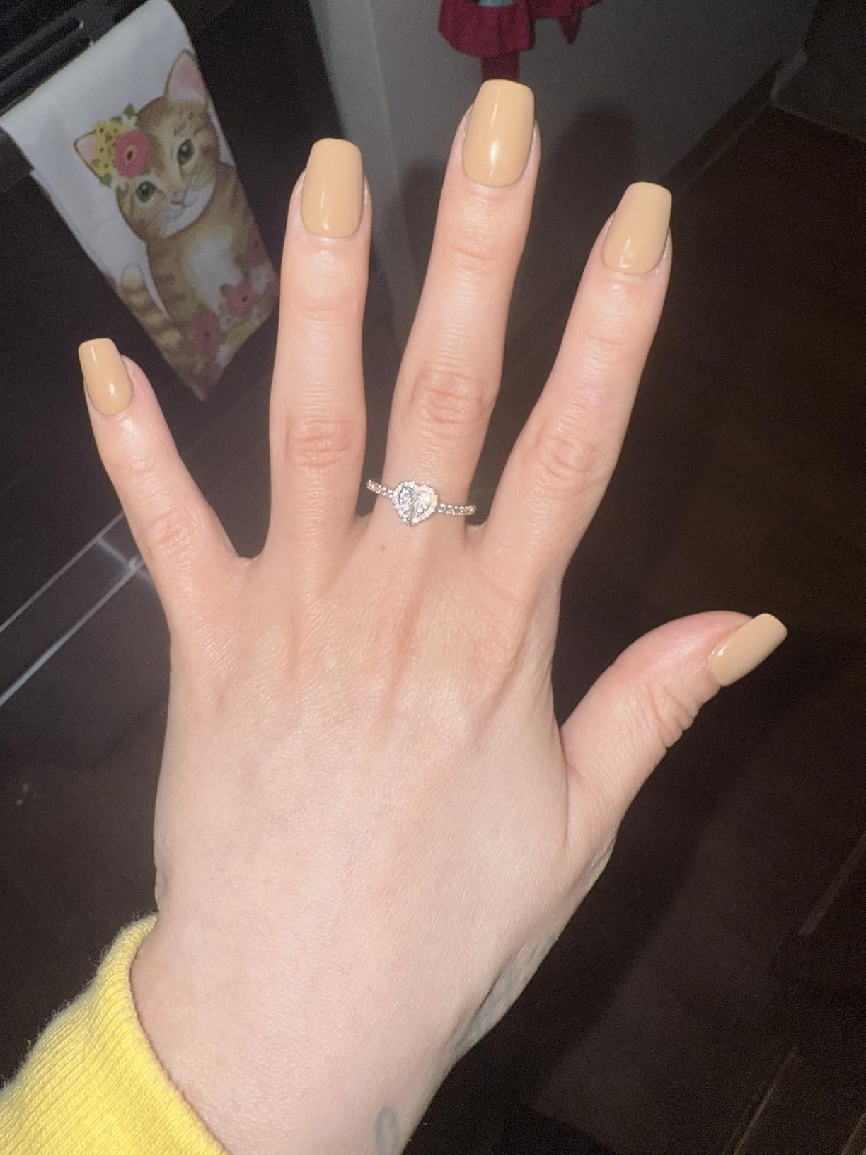 "I bought this as a personal reminder to love myself more, and I’m honestly stunned by how beautiful it is. The heart-cut stone sparkles just like a real diamond, and the band has a comfortable, solid feel. I have sensitive skin, but no irritation at all. It arrived within four days, beautifully packaged. For the price, this feels like a small luxury I truly deserved."