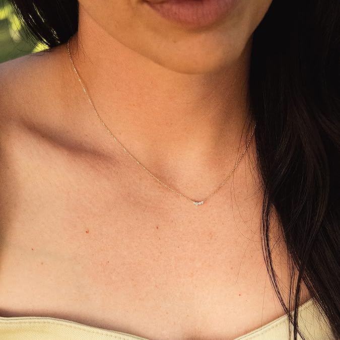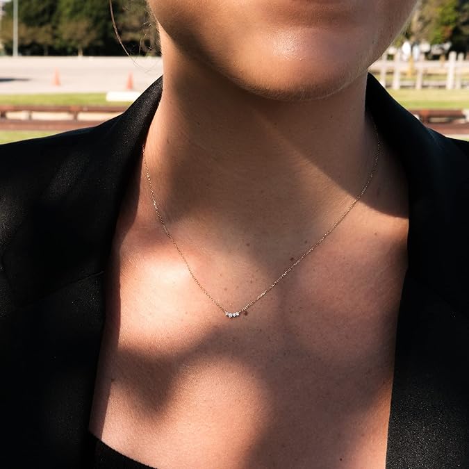 "I’m usually skeptical of layered necklaces because they tangle or feel too heavy—but this one is so lightweight and lays perfectly. The sparkle is just enough to feel special without being flashy. I’ve worn it with a white tee and with a cocktail dress—versatile is an understatement. Feels way more expensive than it is. Love the subtle luxury!"