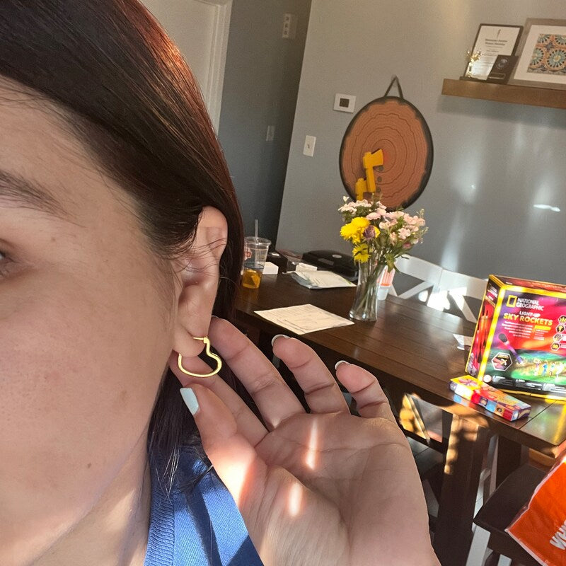 These heart hoops have become my perfect everyday accessory! They add just the right amount of interest to any outfit without being overwhelming. The gold finish is beautiful and hasn't tarnished at all despite frequent wear.