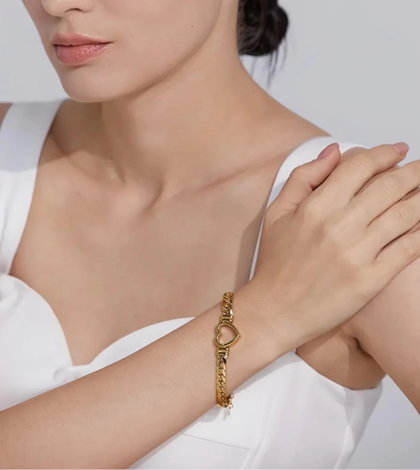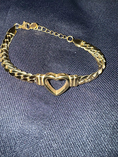 This bracelet is simply stunning! The gold plating is flawless and the open heart charm is beautifully crafted. The Cuban link chain adds a stylish edge that elevates any outfit. It's lightweight yet substantial feeling, and the adjustable length ensures a perfect fit. True luxury without the luxury price tag!