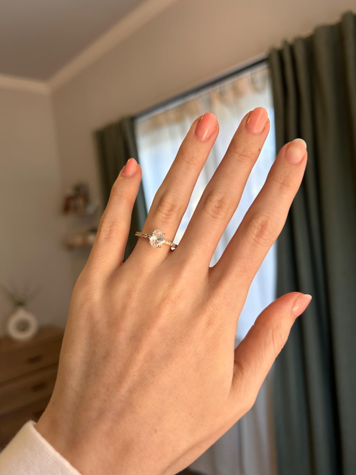 "I lost my original engagement ring hiking and needed something beautiful but affordable to wear every day. This one? Stunning. The oval cut sparkles in every light, and people constantly assume it’s real. It even fits better than my old ring! My husband was shocked by the price—says it looks like a few thousand-dollar piece."