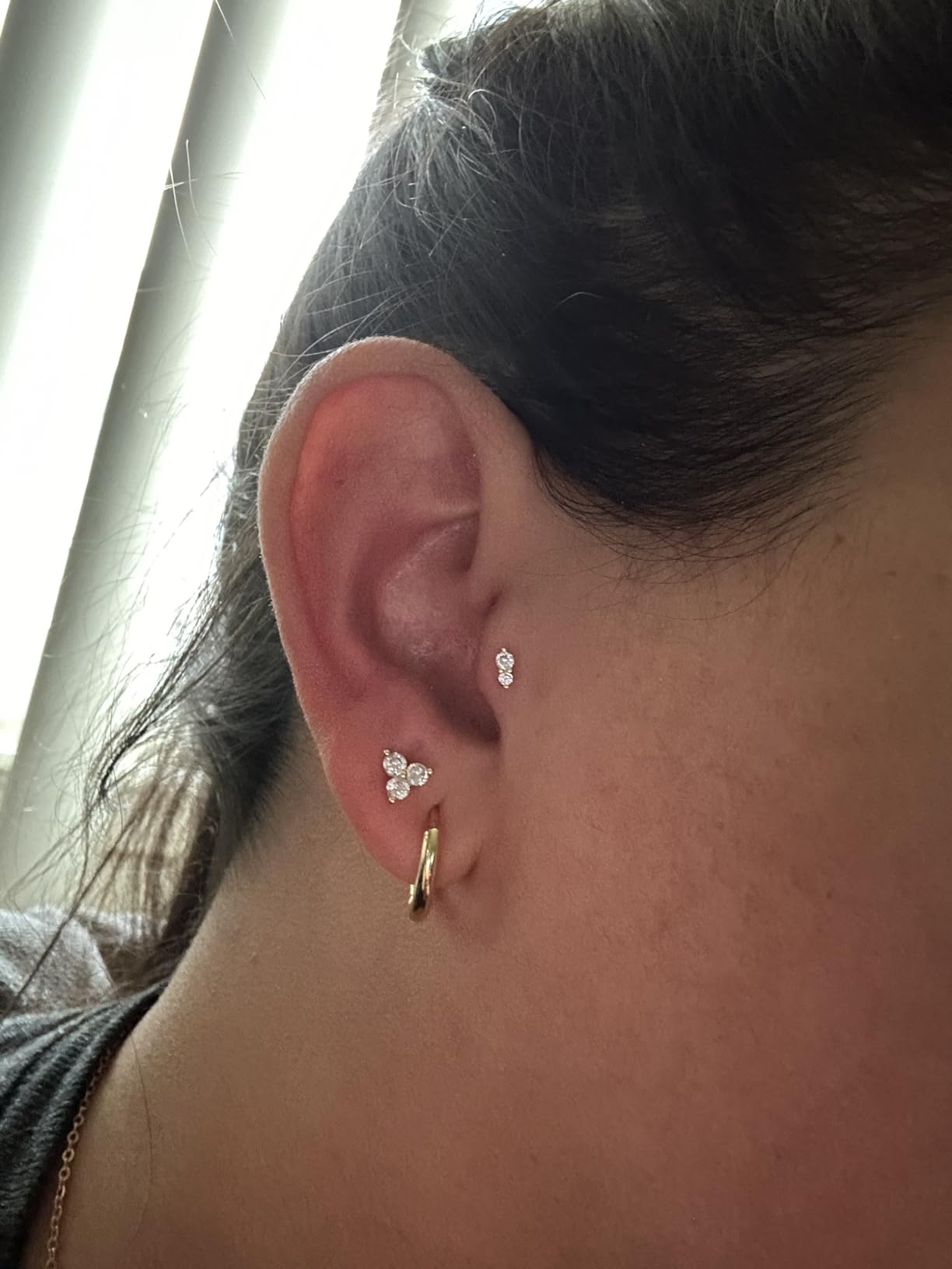 These earrings are a beautiful addition to my jewelry collection! The triple stones create such a lovely sparkle effect. They're the perfect size for everyday wear but still make a statement. The gold plating has a beautiful warm tone that complements my skin.